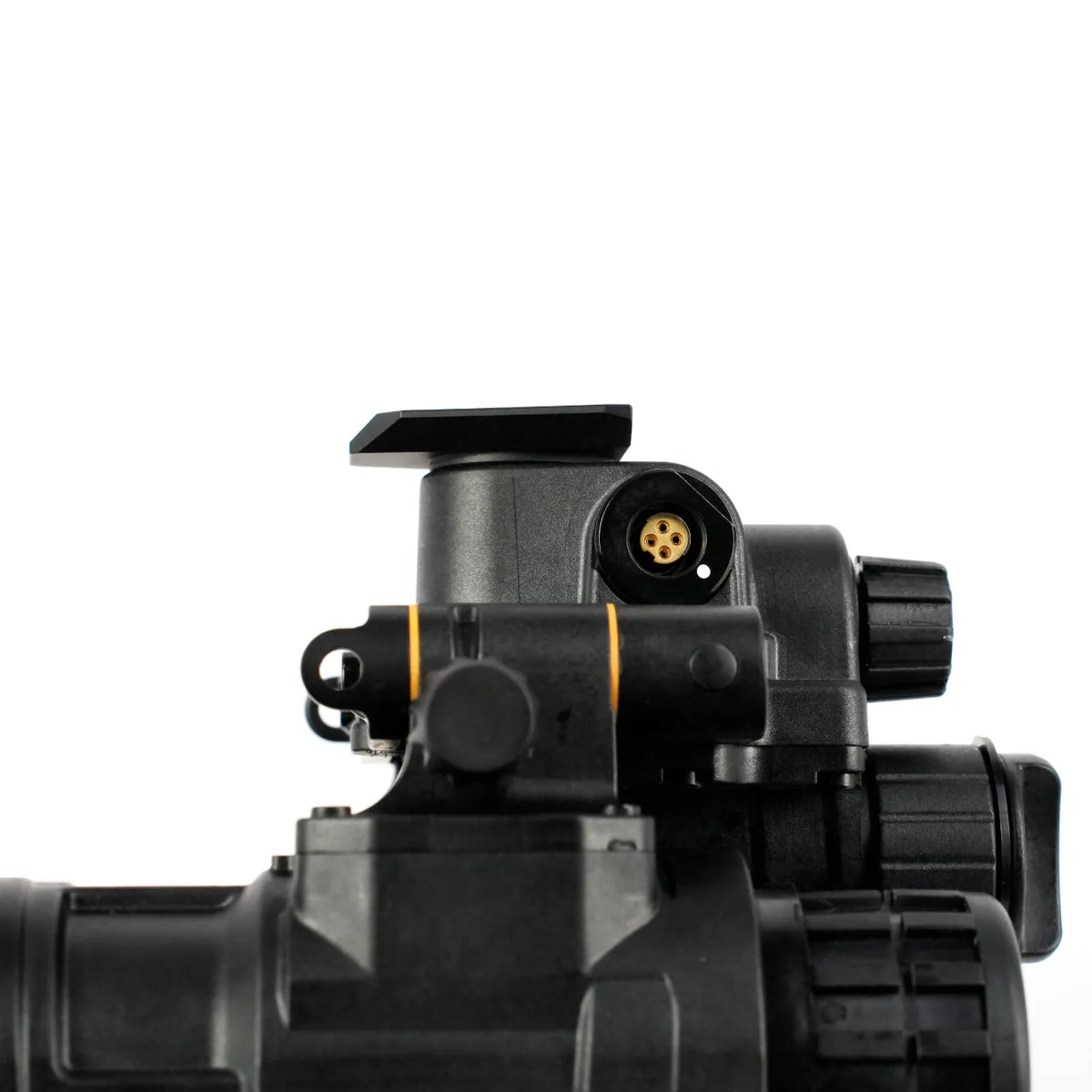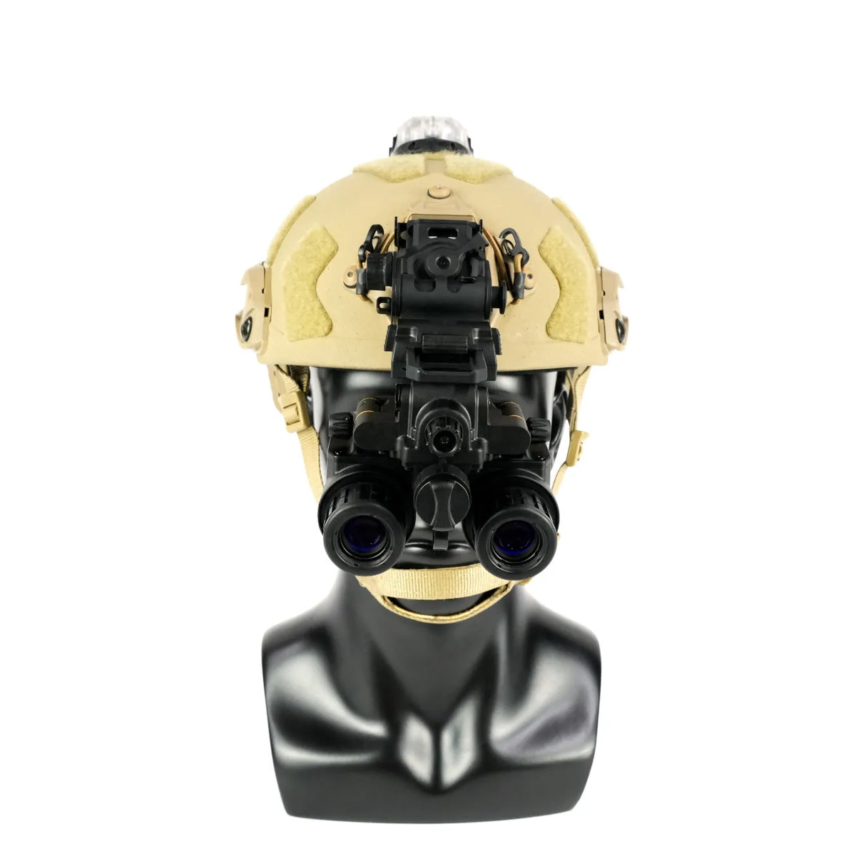 PVS31 is a high performance binocular night vision device. It is featured by high resolution optics, compact housing and ultra light weight. It can be installed with Gen2+ multi-alkali cathode or Gen3 gallium arsenide cathode intensifier tubes. The system image resolution can be as high as 72 lp/mm, and FOM as high as 3000, depending on tubes installed. Unlike similar legacy systems, the PVS31 lenses are designed with quick disassembly features. This innovation allows users to field-stripe the lenses and tubes for maintenance and trouble shooting. With optimized structure and patented material, the system weight is below 450g (w/ tubes and w/o battery). With the high image quality, ultra low weight and robust structure, the PVS31 allow its users to train and operate under complex scenarios and harsh conditions. It is especially helpful in improving situation awareness and combat effectiveness of special force units.