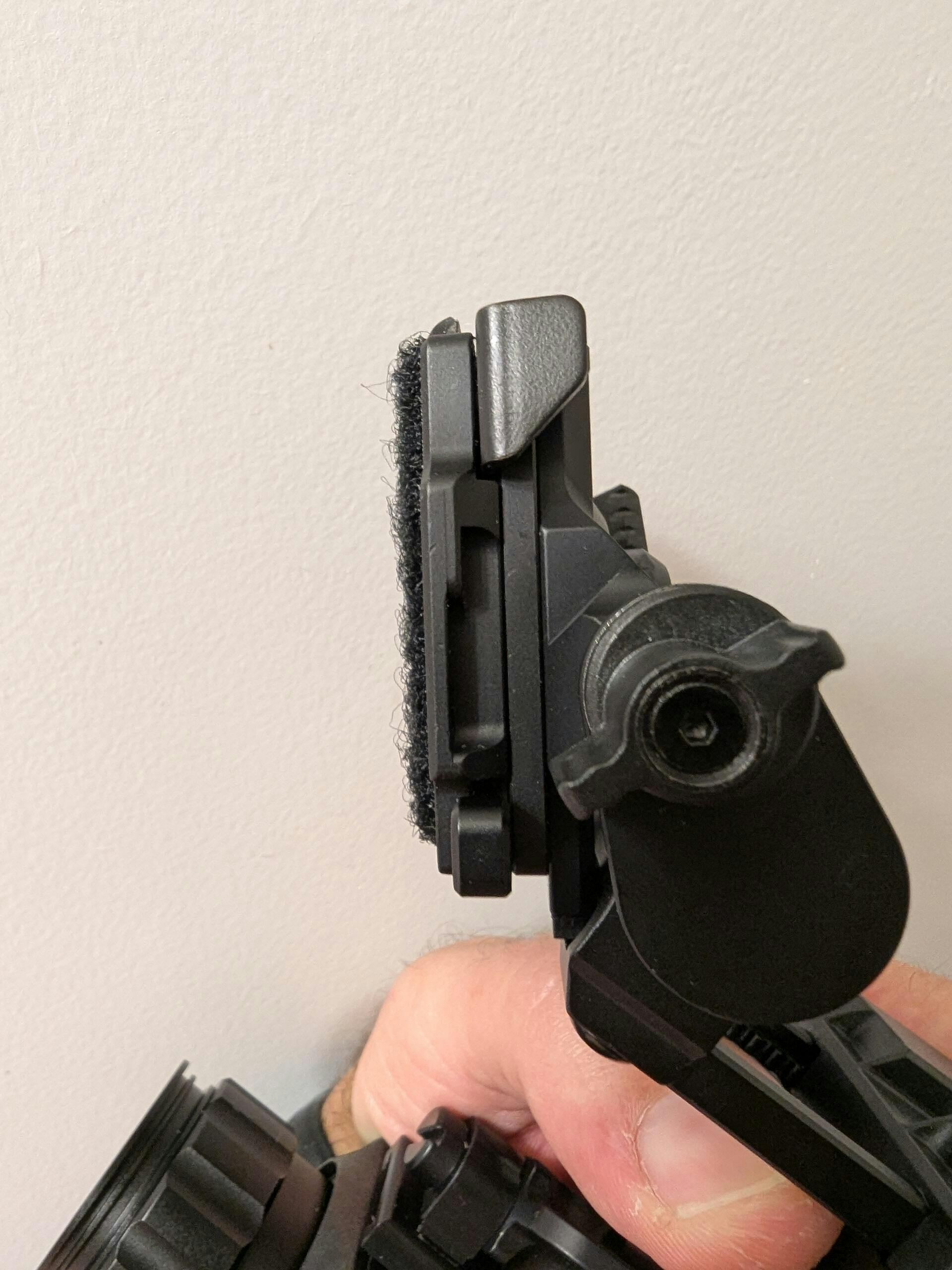 Low profile. When folded, it closely adheres to the helmet , reducing the helmet's center of gravity. User friendly. Single-handed operation and adjustment by the user. Safety release feature reduces the risk of neck injuries. Dovetail slot securely locks various night vision devices in place. Compatible with all FAST helmet bases. Dual-axis adjustment and locking design accommodates different ocular distances as well as various gas mask,protective goggles. Ensuring precise return to the adjusted near-eye position after multiple folds and unfolds.